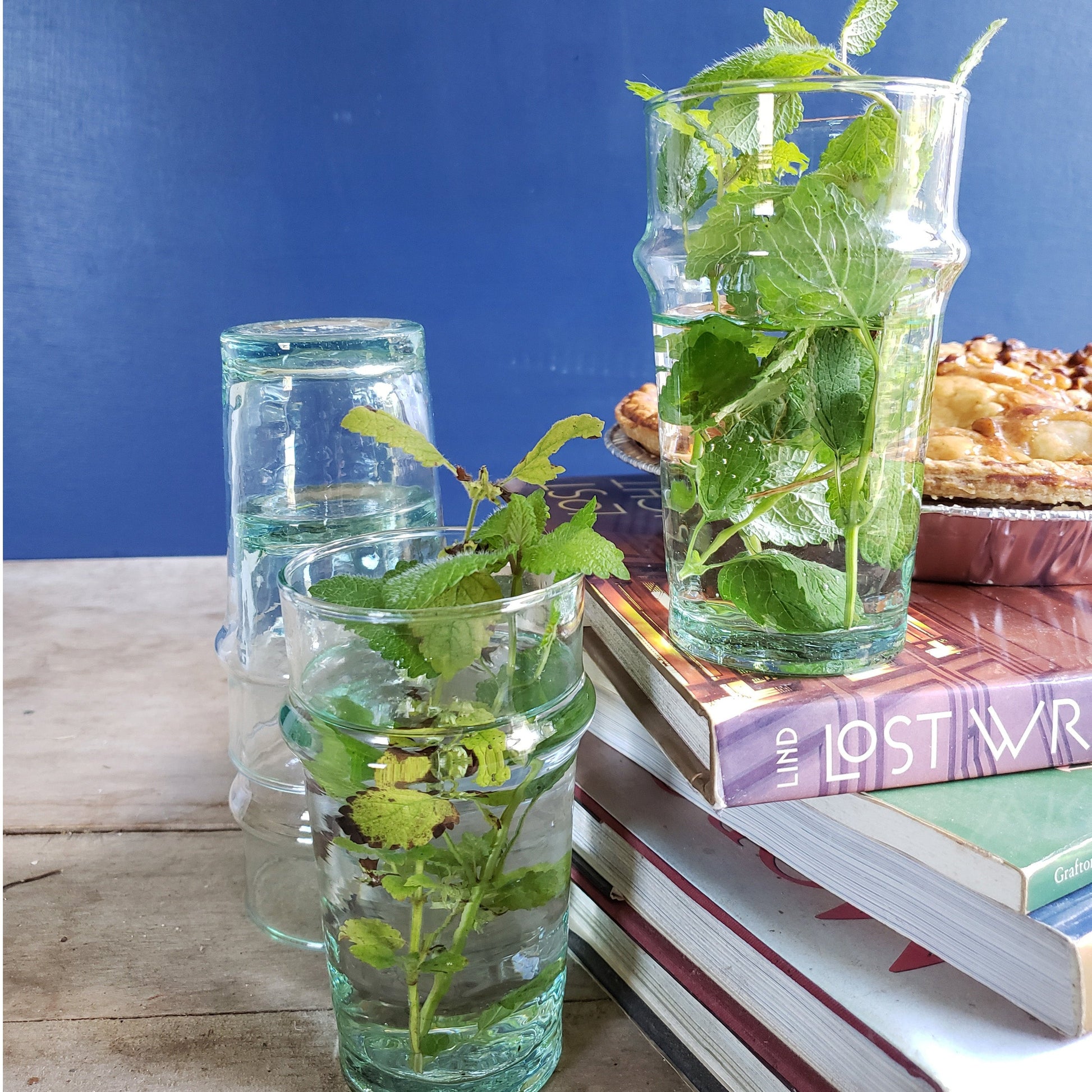 Savor your favorite beverages in style with our gorgeous recycled glass tea glasses, inspired by the traditional Fez style of Morocco. Each glass is a unique work of art, handcrafted by skilled artisans using recycled glass for a sustainable and eco-friendly option.