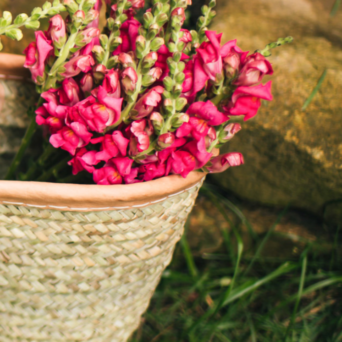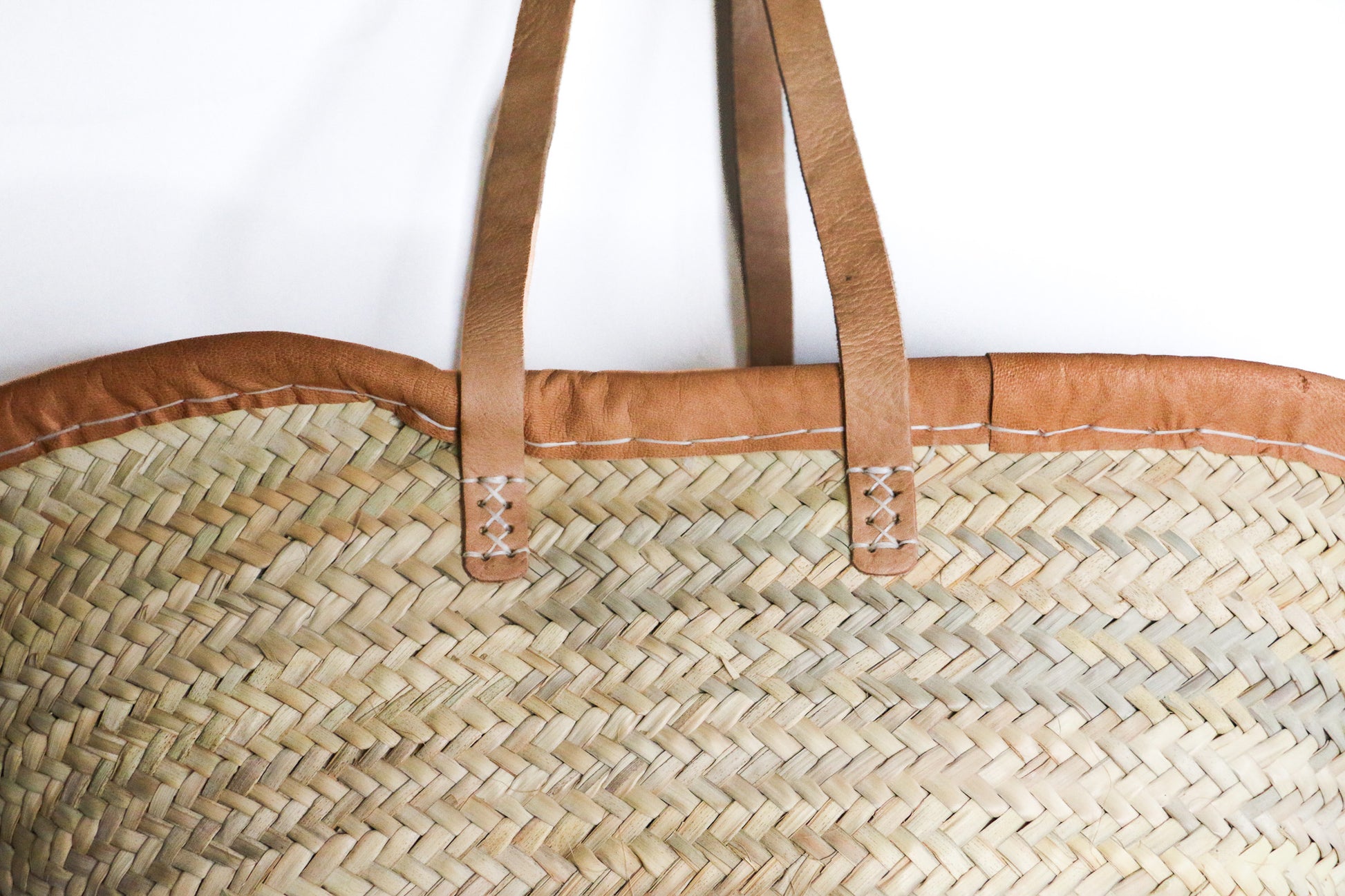 A sturdy and simple woven basket, an updated version of our classic French Market Basket, but trimmed with leather. A timeless and beloved staple for shoppers worldwide.