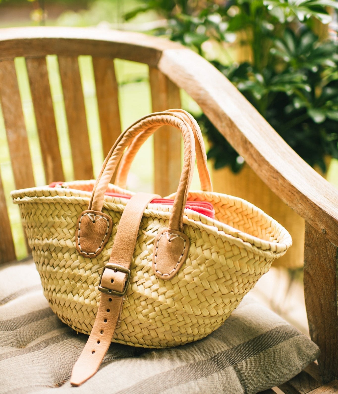 This charming handwoven palm basket is the perfect accessory for your seasonal outings. The top buckle adds a touch of style and security to the classic market-style purse design.