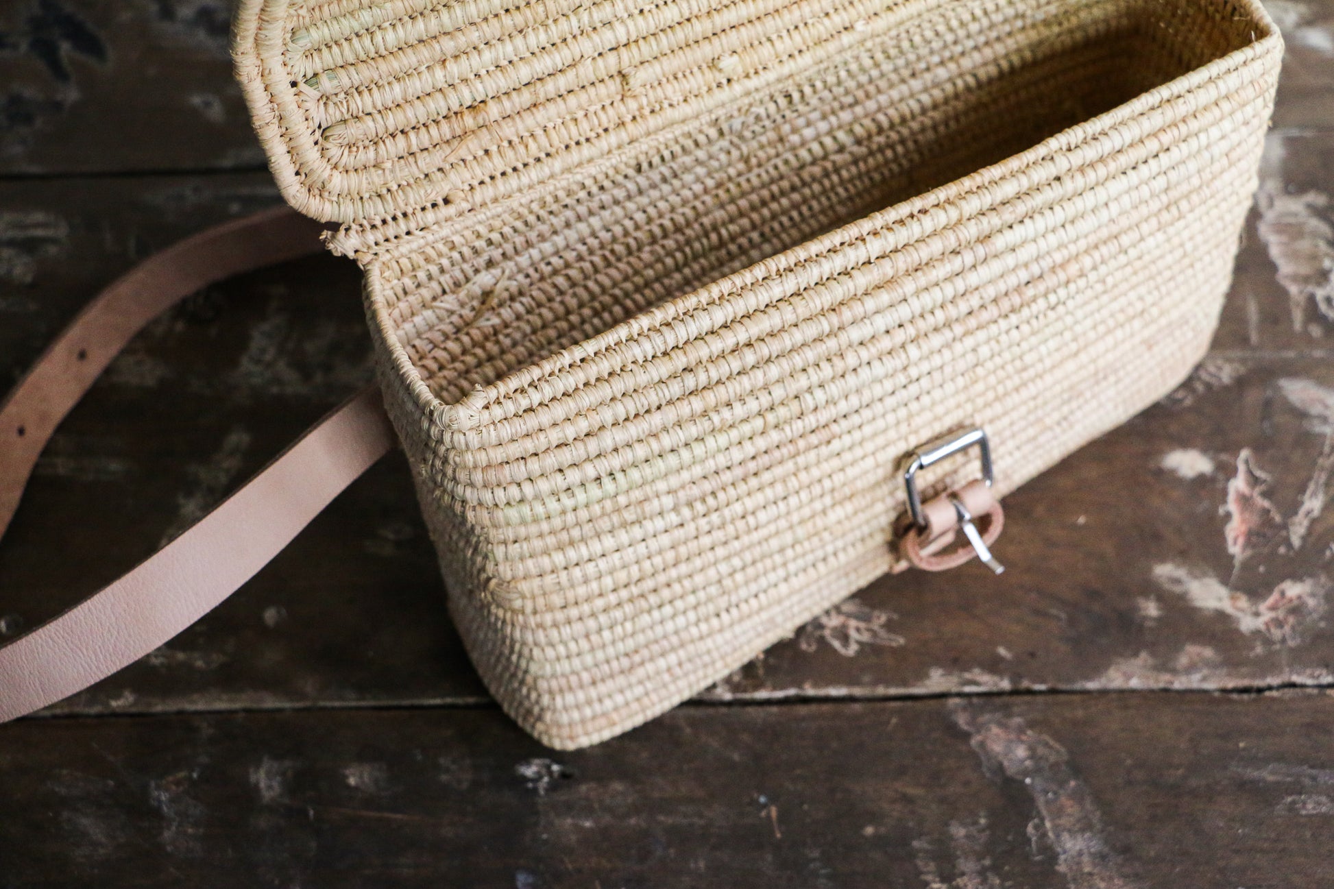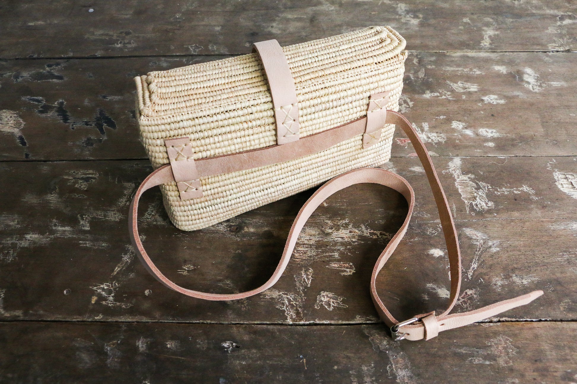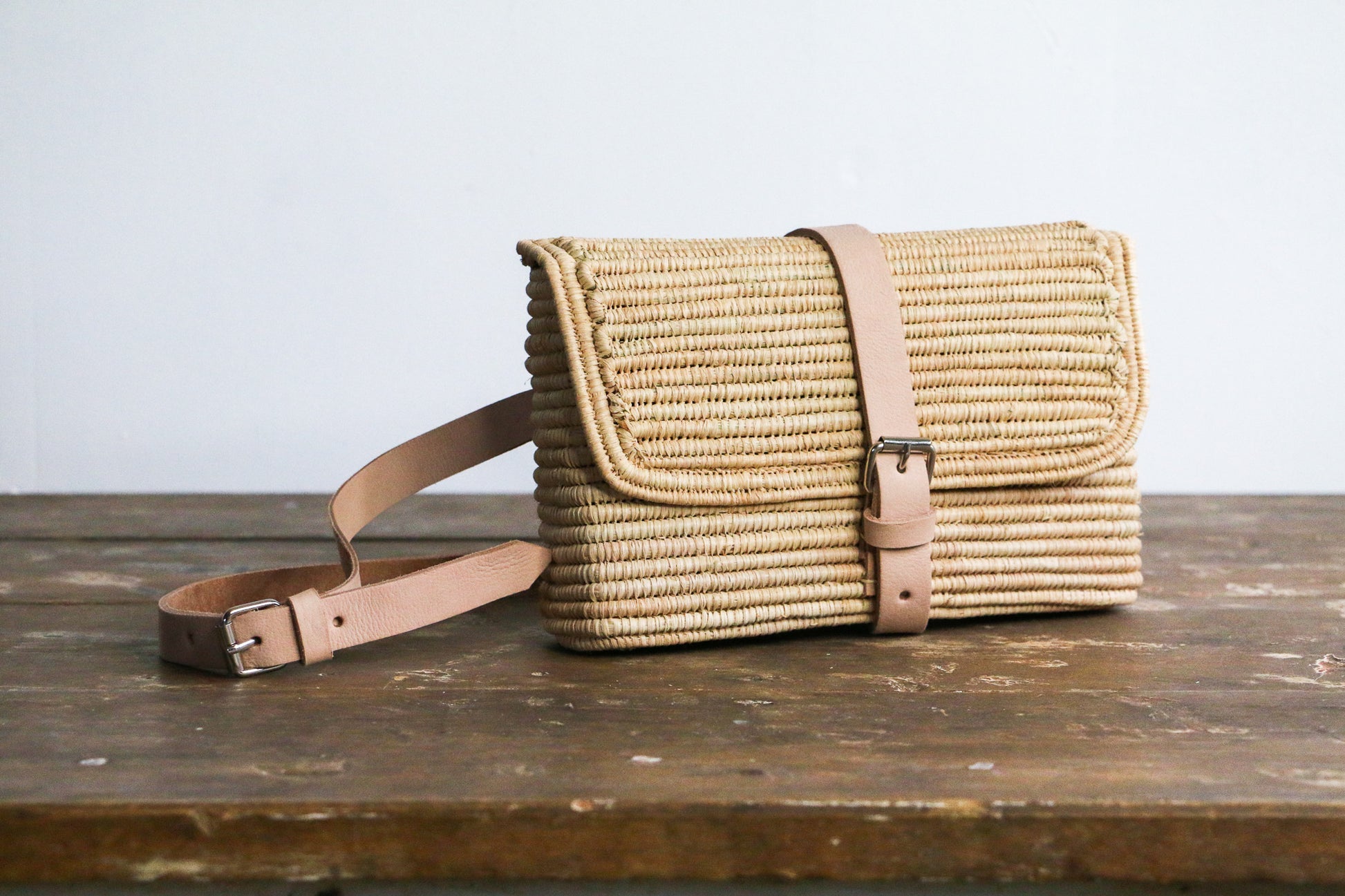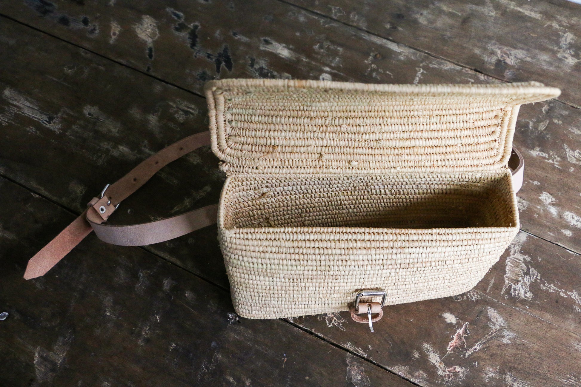Say hello to our newest design: a super modern, boho & chic version of a classic fanny pack. Tightly woven, structural bag with a leather belt strap and buckle enclosure. Each belt bag is masterfully handwoven by artisans in Morocco, and is perfect for your daily living, spacious enough for your essentials, and stylish enough for your next festival.